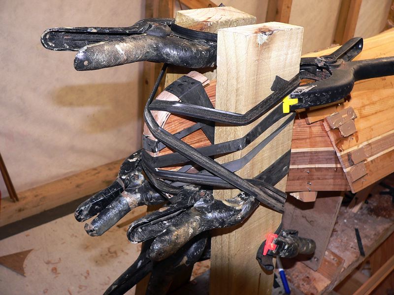 030 Laminating the stern outer stem in place.
